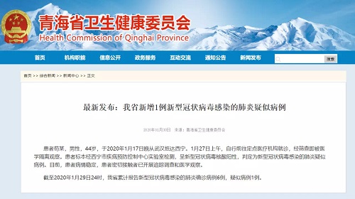 人民網(wǎng)西寧1月30日電(蔣瑩)1月30日,本網(wǎng)從青海省衛(wèi)生健康委獲悉,截至2020年1月29日24時(shí),青海省累計(jì)報(bào)告新型冠狀病毒感染的肺炎確診病例6例,疑似病例1例。