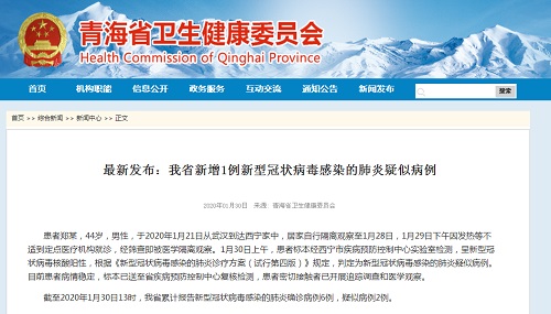 截至2020年1月30日13時(shí),青海省累計(jì)報(bào)告新型冠狀病毒感染的肺炎確診病例6例,疑似病例2例。