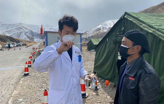 海拔4200米、零下30攝氏度的玉樹藏族自治州曲麻萊縣,一間簡(jiǎn)易的板房和兩頂帳篷,就是青南支醫(yī)隊(duì)員趙邦維和當(dāng)?shù)乜c(diǎn)執(zhí)勤民警的全部家當(dāng)!斑@里是玉樹州的東大門,每天過往的車輛能達(dá)到100輛,目前我們已經(jīng)成功勸返了53輛車154人!壁w邦維說。