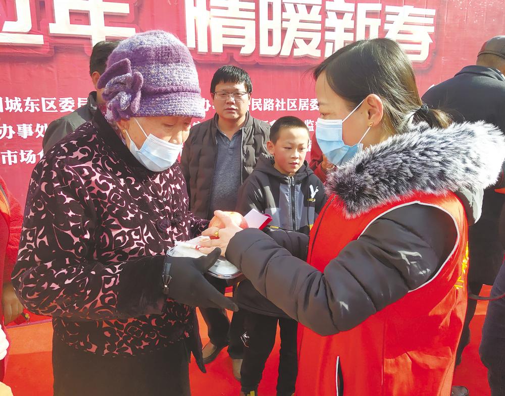 春節(jié)臨近,一份份熱乎乎的飯菜送到匯鑫市場來寧務(wù)工的商戶手中。西寧市城東區(qū)民政局、富民路社區(qū)和幸福社區(qū)聯(lián)合仆邦社會工作服務(wù)中心用這一份份營養(yǎng)餐感謝商戶們舍小家為大家,響應(yīng)政策、就地過年。 青海日報記者 賈泓 攝