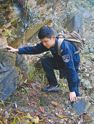 陳亮亮在攀爬巡護(hù)線路中的一處陡坡。新華社記者 萬 象攝