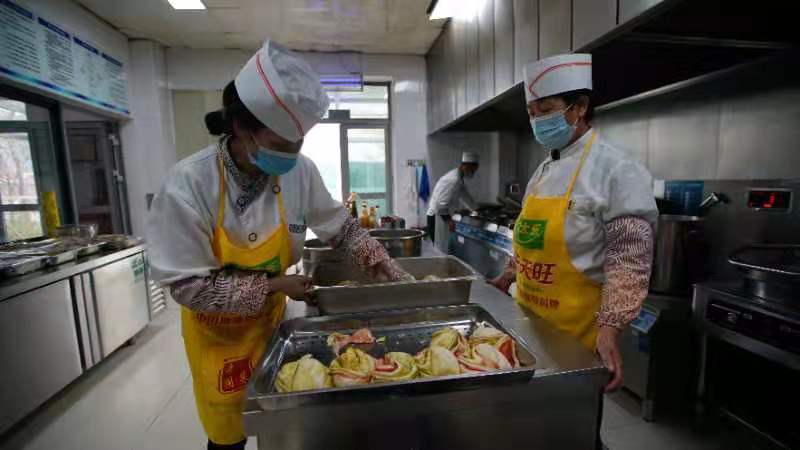每個(gè)星期食堂都會提前制定菜單,盡可能地照顧到每一位員工的口味。來自湖北的任亮主食偏好米飯,來自內(nèi)蒙的王國鑫愛吃羊肉,小伙子們的飲食喜好大師傅都爛熟于心,他總是想方設(shè)法為大家做帶著家鄉(xiāng)味道的菜品!俺燥栵埐幌爰,食堂雖小,但菜品干凈、味道可口,讓我們體會到家的感覺!闭劶笆程,檢修人員都贊不絕口。