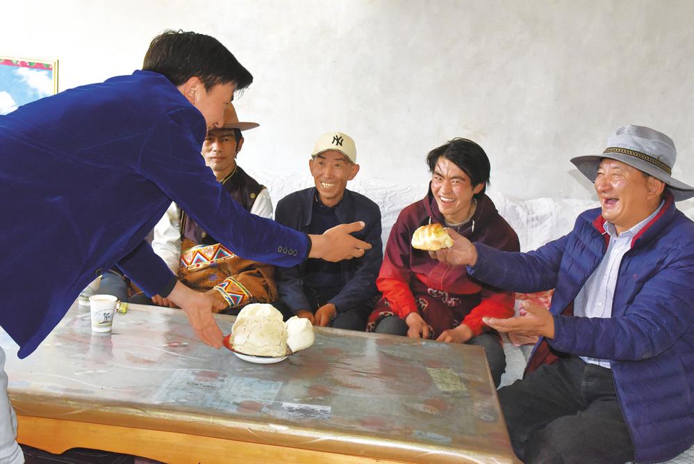 豆后保說:“服務(wù)隊把每月1日確定為‘德敦簇敦’黨團(tuán)服務(wù)日,這天大家同牧民群眾坐在一起梳理黨務(wù)村務(wù)家務(wù),調(diào)處化解矛盾糾紛,宣傳學(xué)習(xí)黨的方針政策,互幫互助。對于能解決的問題,服務(wù)隊立即解決,解決不了的則向村‘兩委’匯報,實現(xiàn)了上情下達(dá)、下情上傳!