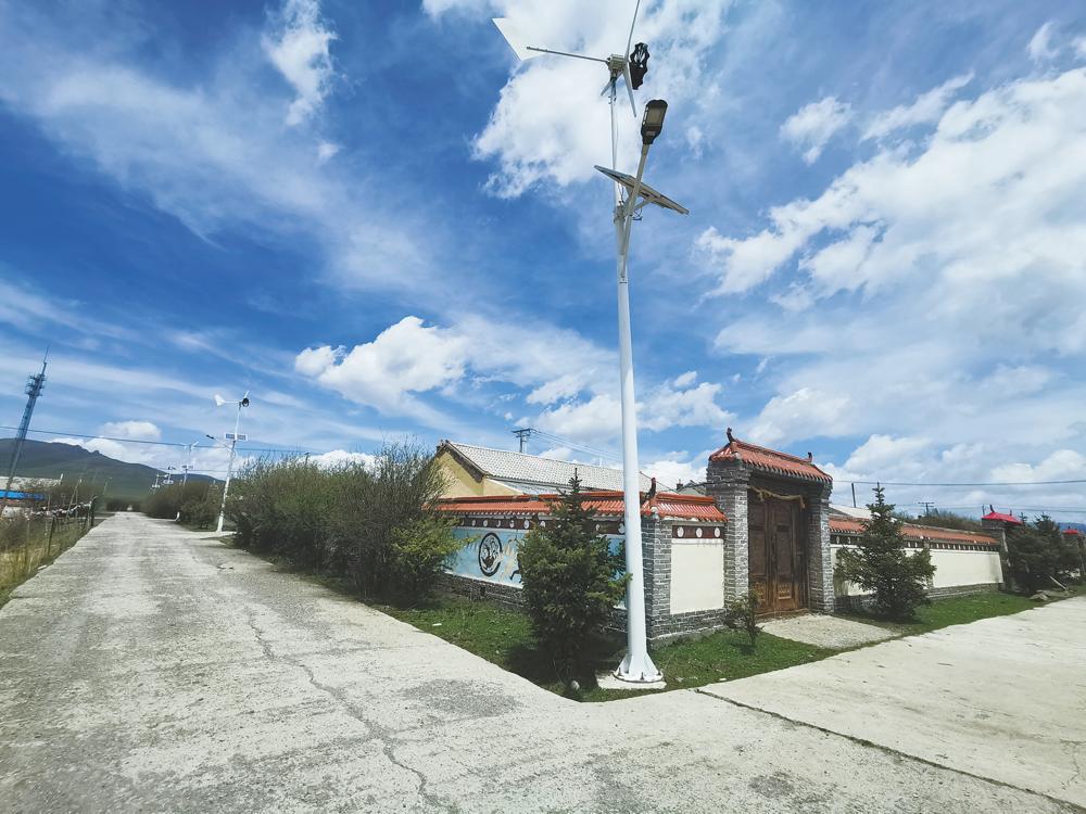 紅瓦白墻,獨門獨院的同寶新村掩映在郁郁蔥蔥的綠樹之中,平整的硬化路連通了家家戶戶,每隔一段距離就會有一個“風(fēng)光互補(bǔ)路燈”,到了晚上也能夠照亮回家的路。