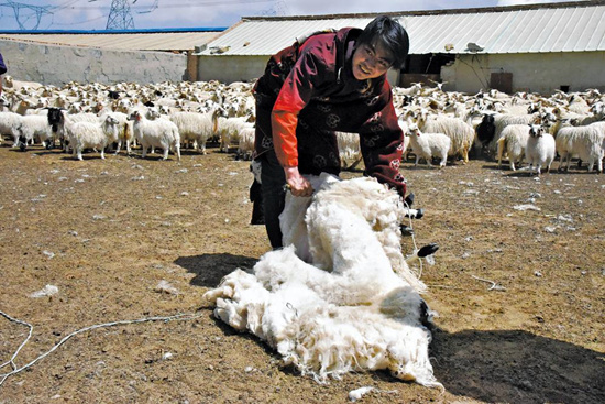 在牧民德什姐家的羊圈內(nèi),記者看到服務(wù)隊幾名青年隊員正在幫她家整理剪好的羊毛。德什姐告訴記者,她家兩個孩子在城里上學(xué),家里勞力少,這兩天正趕上剪羊毛的忙碌時期,感到力不從心,黨團(tuán)服務(wù)隊的幾個年輕人得知消息后,專門趕來幫忙,著實減輕了她的壓力。