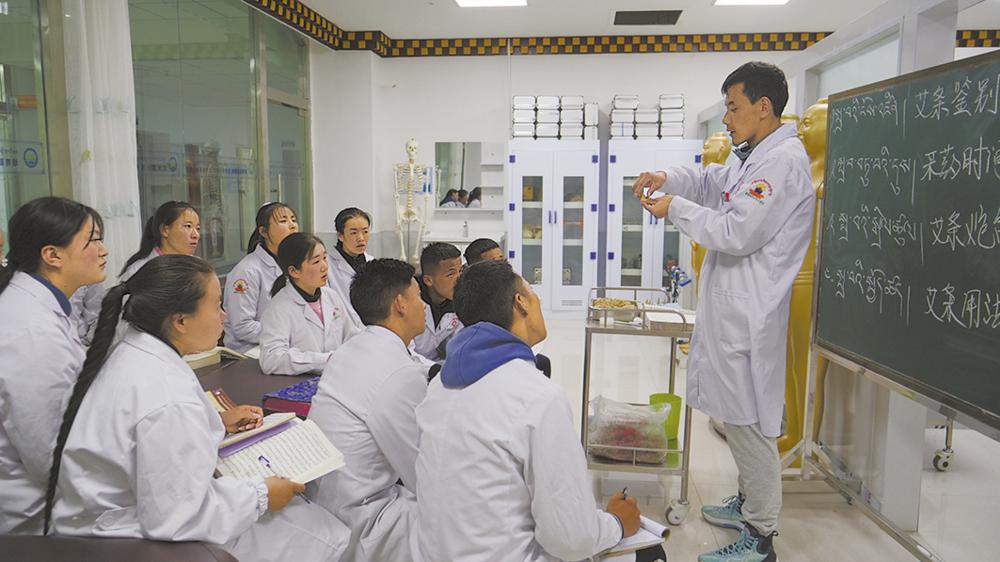 藏醫(yī)專業(yè)部的學(xué)生在學(xué)習(xí)艾條制作。青海日?qǐng)?bào)記者 郭靚 攝