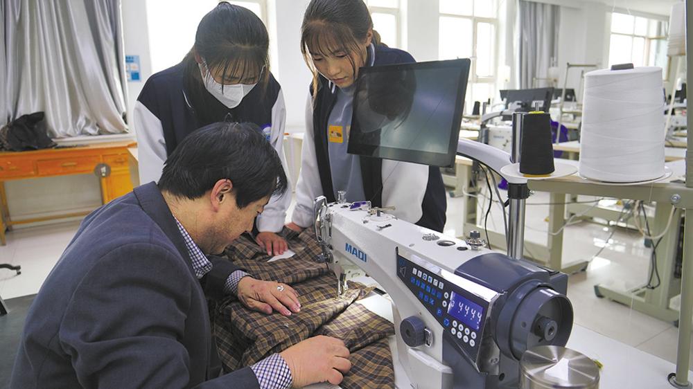 民族服裝與服飾專業(yè)的老師在給學(xué)生做示范。青海日?qǐng)?bào)記者 郭靚 攝