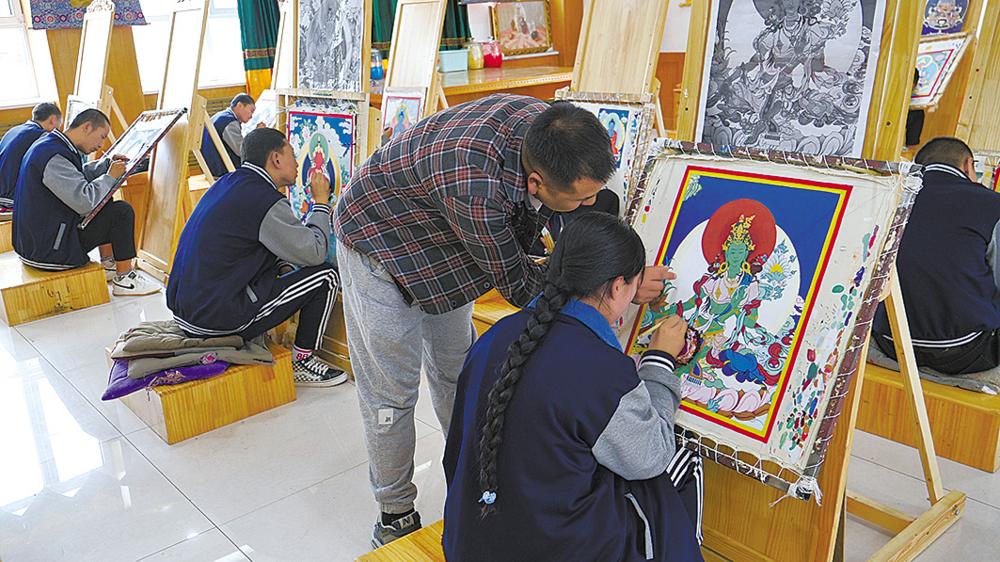 唐卡專業(yè)課堂。青海日?qǐng)?bào)記者 郭靚 攝