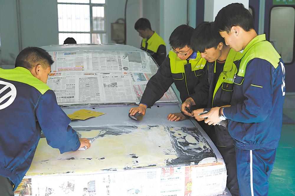 汽車產(chǎn)業(yè)專業(yè)部的學(xué)生在實(shí)訓(xùn)室里練習(xí)。 海南州職業(yè)技術(shù)學(xué)校供圖