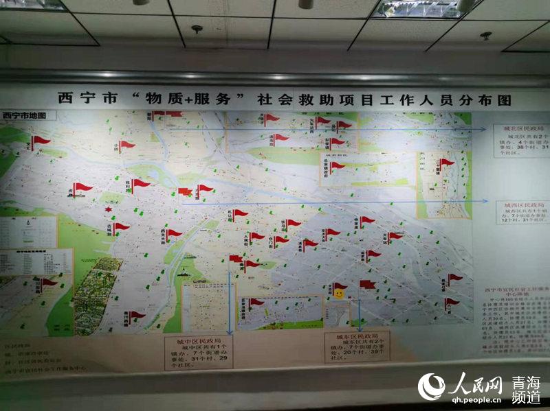 西寧市“物質(zhì)+服務”社會救助項目工作人員分布圖。 人民網(wǎng) 馬建輝攝