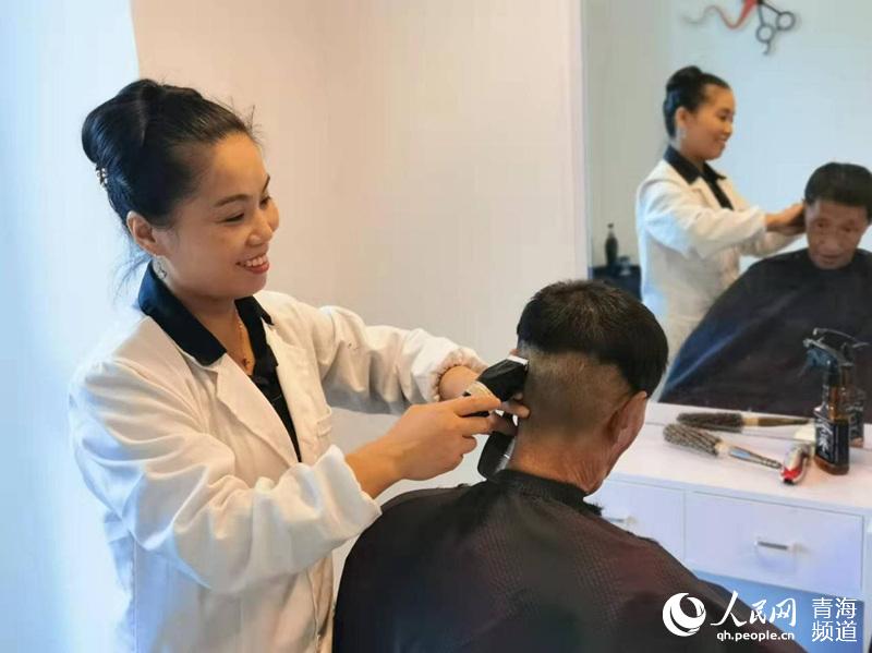 志愿者為轄區(qū)老年人開展義務理發(fā)服務。 人民網(wǎng) 馬建輝攝