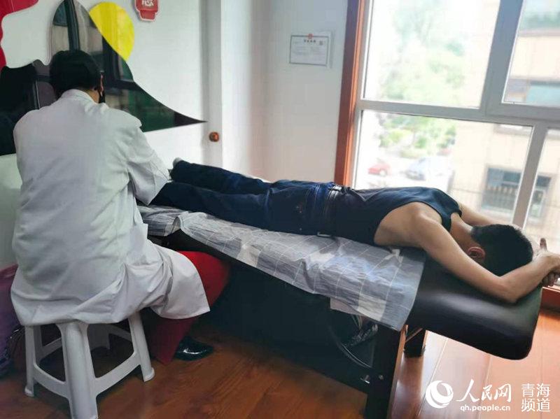 醫(yī)療類社工為轄區(qū)低保居民、殘疾群眾進行中醫(yī)理療。人民網(wǎng) 馬建輝攝
