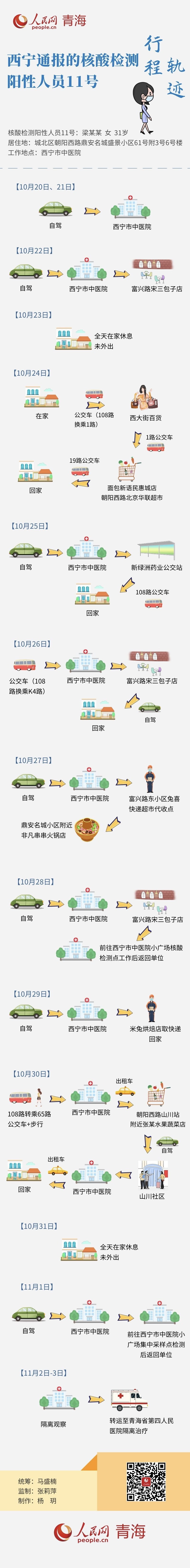 一圖速覽|西寧通報(bào)的核酸檢測(cè)陽(yáng)性人員11號(hào)行程軌跡