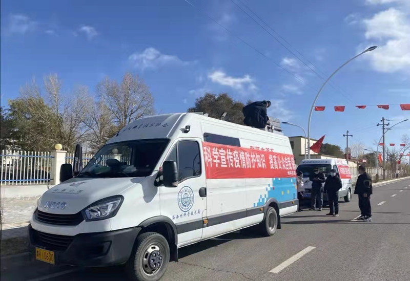 “科普大篷車”變身“防疫科普宣傳車”。中共烏蘭縣委黨史學習教育領導小組辦公室供圖