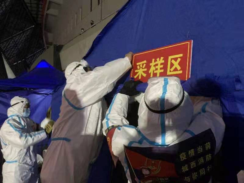 瑪尼堅(jiān)在疫情防控一線。西寧市消防救援支隊(duì)供圖