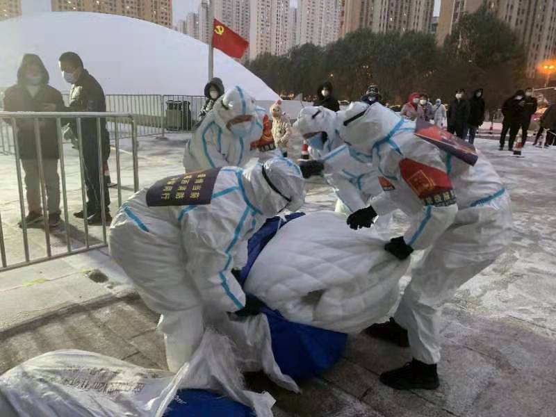 瑪尼堅(jiān)主動(dòng)投身疫情防控第一線,帶領(lǐng)黨員先鋒隊(duì)積極配合社區(qū)做好人員登記、測(cè)溫、查驗(yàn)健康碼、消毒、送物資、搭建帳篷、引導(dǎo)核酸檢測(cè)等疫情防控工作,從一個(gè)封控點(diǎn)轉(zhuǎn)移到下一個(gè)封控點(diǎn),一道道火焰藍(lán)的身影逆向而行,與醫(yī)護(hù)人員、社區(qū)工作人員、志愿者等并肩戰(zhàn)斗,保障核酸檢測(cè)工作順利進(jìn)行。