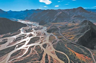 青海省玉樹藏族自治州囊謙縣,瀾滄江上游扎曲河的網(wǎng)狀水系。