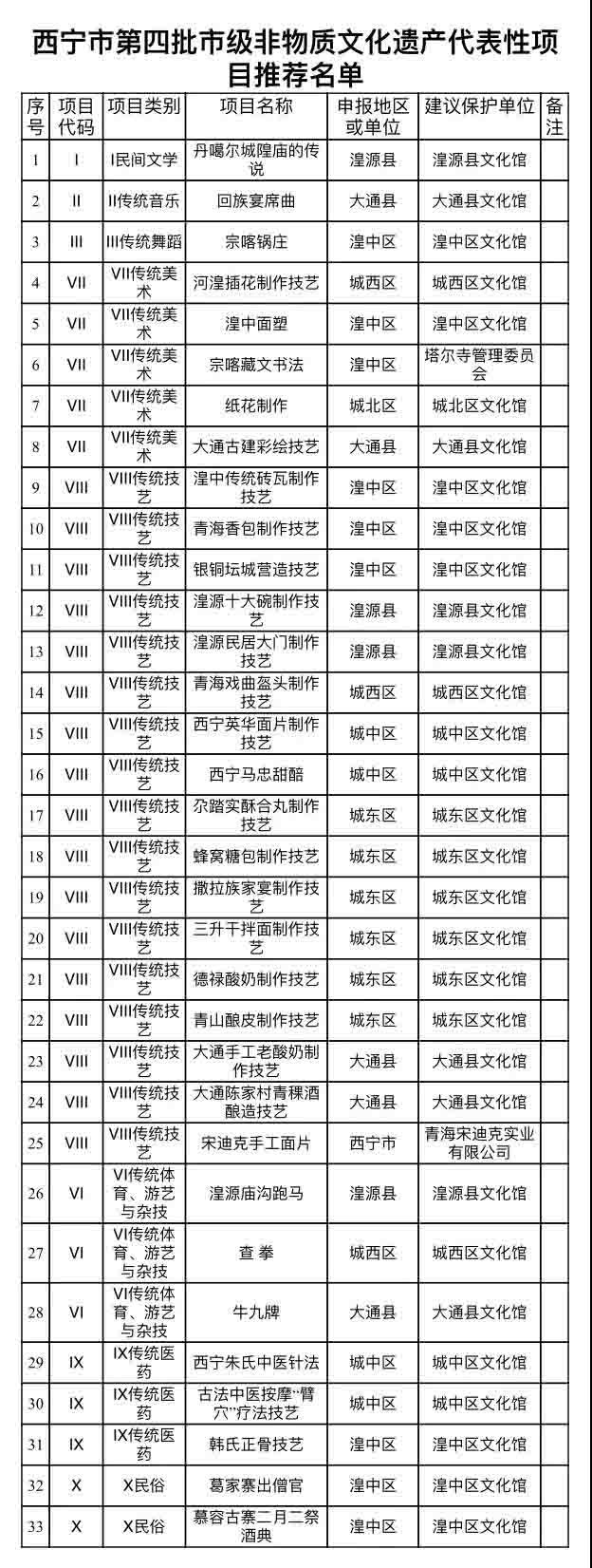 西寧公布第四批市級(jí)非物質(zhì)文化遺產(chǎn)代表性項(xiàng)目名單