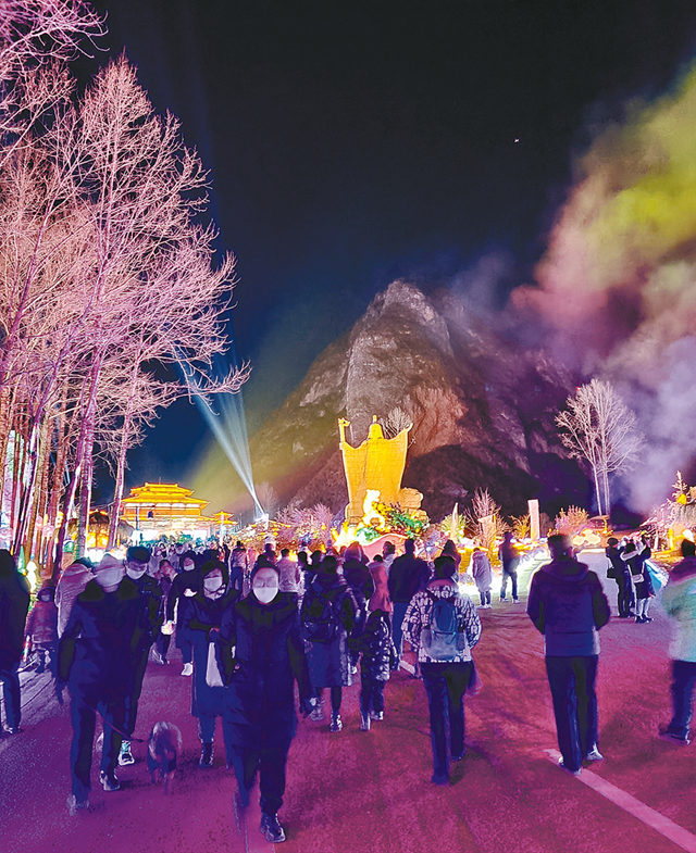 西寧市湟源縣宗家溝文化旅游景區(qū)的夜景燈光秀,帶給游客別樣體驗。青海日報記者 魏雅琪 攝