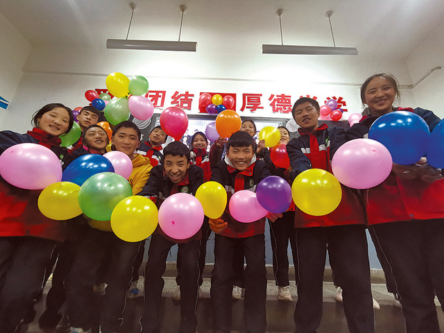 果洛藏族自治州瑪多地震災(zāi)區(qū)的師生歡度新年。青海日報記者 李興發(fā) 石成硯 攝
