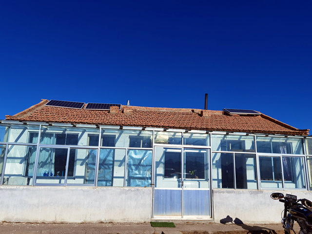 由于地處偏遠(yuǎn),通電成本實(shí)在太高。所以,三塊光伏板,就成了葉金俄日夫婦所有用電的來(lái)源。夏天日照長(zhǎng),電池能蓄滿,還能勉強(qiáng)夠用;但一到冬天,白天變短,吃不飽的電池板也不時(shí)耍個(gè)小脾氣,燈亮著亮著突然就滅了、電視看著看著突然就黑了……也正因此,冰箱就成了擺設(shè)。二十多天去趟縣城,夫妻倆每次買的菜都差不多:土豆、甘藍(lán)、蘿卜、白菜、大蔥,都是些耐放的!安贿^(guò)有菜吃就不錯(cuò)了,剛來(lái)那幾年,就是面、土豆,不也過(guò)來(lái)了嗎?”