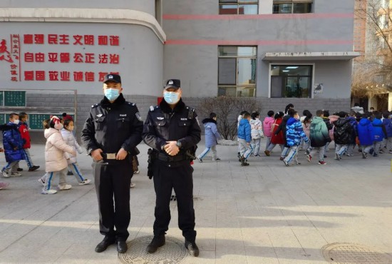 開學期間民警執(zhí)勤。城西區(qū)委宣傳部供圖