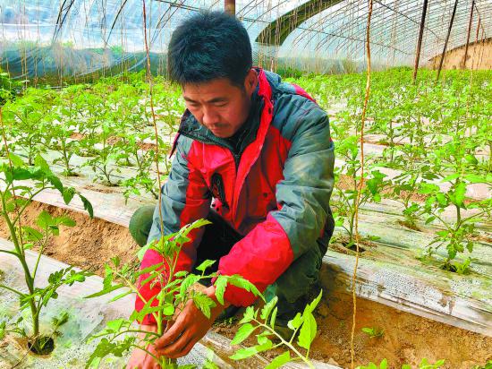 種植戶正在查看西紅柿苗的生長(zhǎng)情況。 青海記者 王晶攝