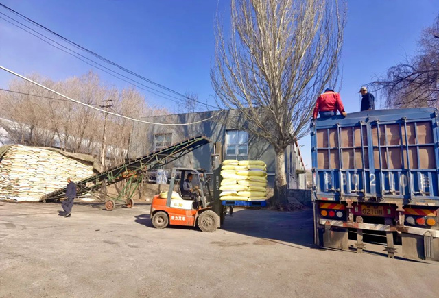 “這是一批發(fā)往貴德縣的化肥,一共35噸,目前已經(jīng)備好了貨,估計下午就到了。”2月22日一早,青海農牧生產(chǎn)資料(集團)股份有限公司里工人們正在有條不紊地裝運化肥,隨著一條條運輸帶的傳送,不一會,卡車內就裝得滿滿當當。