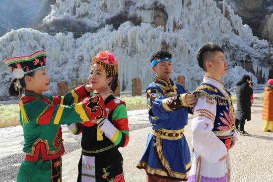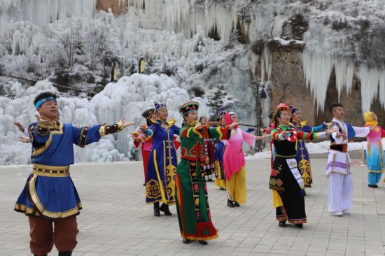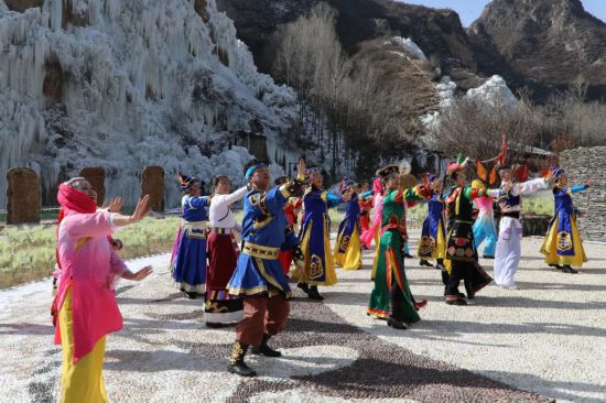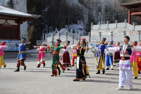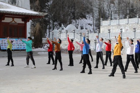 在此次比賽中,西寧市文化館先后組織相關(guān)業(yè)務(wù)干部及廣場(chǎng)舞愛好者赴湟源縣宗家溝景區(qū)、大通縣鷂子溝滑雪場(chǎng)錄制《一起向未來》廣場(chǎng)舞。作為一座多民族文化聚集的城市,西寧市文化館將冬奧主題廣場(chǎng)舞《一起向未來》通過重新編排,加入土族、撒拉族、藏族、蒙族、回族五大民族元素,選取富有高原地區(qū)特點(diǎn)的冰川及雪地做為取景地,將河湟谷地獨(dú)特的地貌環(huán)境與人文特色完美結(jié)合,為北京冬奧助力加油。