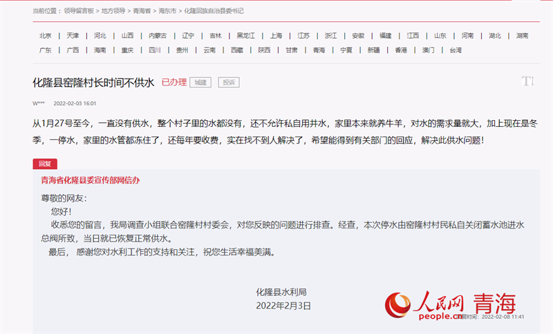 解決了么|飲水難、供水難 青海網(wǎng)友這些急難愁盼獲解決
