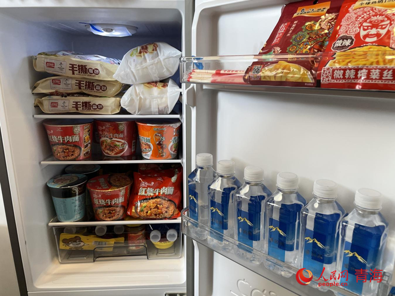 “愛(ài)心驛站”冰箱里的物資。人民網(wǎng) 況玉攝