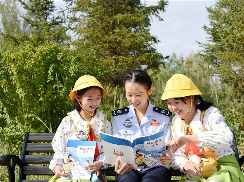 稅務(wù)干部向?qū)W生講解稅法知識。關(guān)卻吉攝