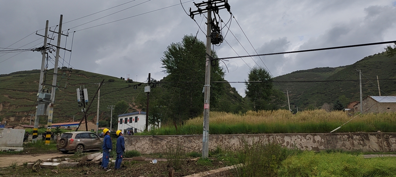 國網(wǎng)大通縣供電公司工作人員正在西寧市大通縣青林鄉(xiāng)沙岱村對受災(zāi)害影響的線路、設(shè)備開展特巡排查。喇小青攝