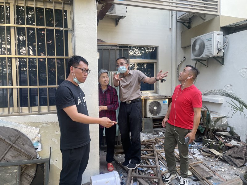 8點50分,在收到荀筱筱的消息后,青年路社區(qū)居委會副主任王清蕓立刻電話聯(lián)系了街道舊改專班的工作人員譚亦顓:“咱們下午跑一趟,去王大姐家里瞅一眼,看看究竟是啥問題,你們也和施工隊說一下?!?/p>