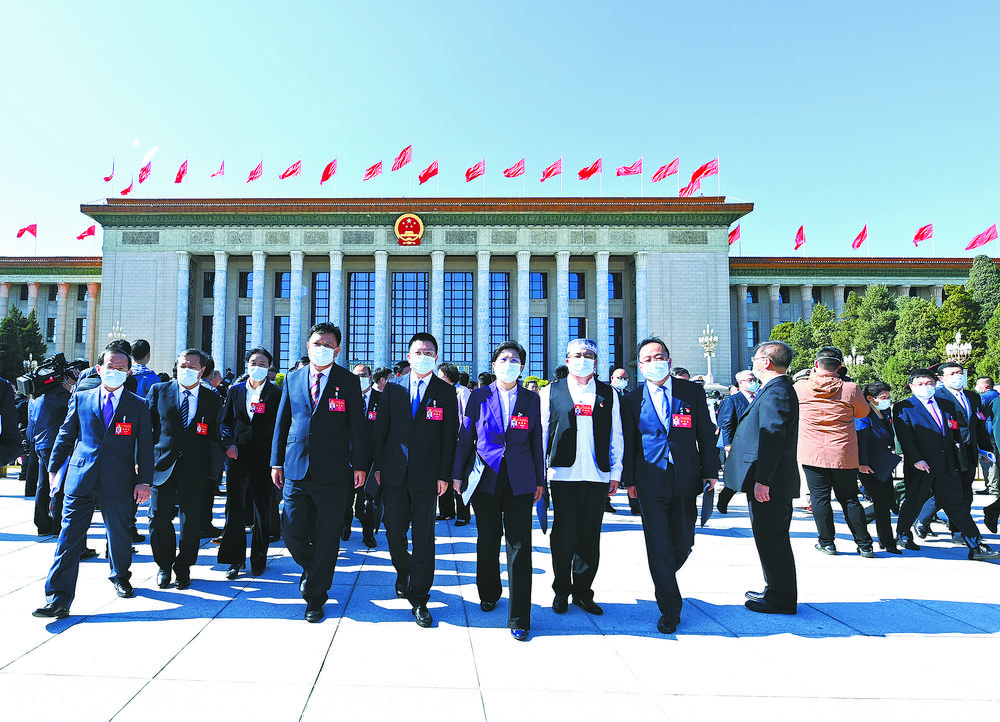 十月十六日,青海省代表參加黨的二十大開幕會聆聽報告后,滿懷信心走出人民大會堂。青海日報記者 張地委 攝