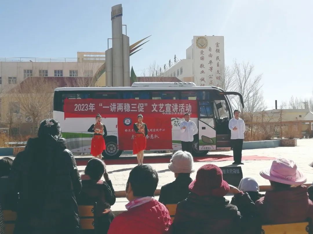 在格爾木市郭勒木德鎮(zhèn)中心廣場,“一講兩穩(wěn)三促”文藝宣講隊表演了歌舞、小品等節(jié)目,精心編排的節(jié)目把宣講工作從單純性說教中解放出來,把抽象的理論政策巧妙轉(zhuǎn)換成百姓聽得懂、喜歡聽的鄉(xiāng)音常理,讓理論宣講更接地氣、更有活力、更具溫度,也讓現(xiàn)場群眾切實感受到黨和政府的溫暖。