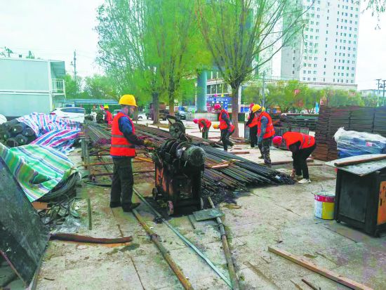 工人們正在進(jìn)行鋼筋加工作業(yè)。