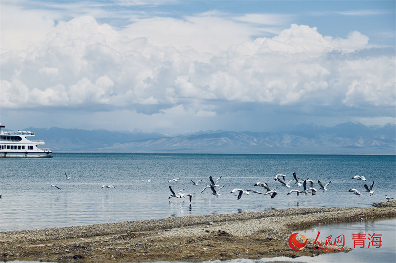 6月11日在青海湖二郎劍景區(qū)拍攝到的水鳥(niǎo)。人民網(wǎng) 馬可欣攝