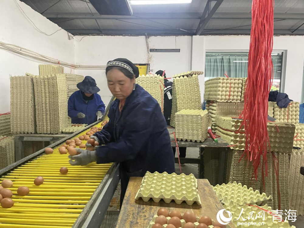“每天下午兩點,我們準(zhǔn)時進入揀蛋時間,全自動設(shè)備將雞舍里的雞蛋傳送至蛋庫房,隨后進行人工分揀包裝。”鄂博溝村黨支部書記、村委會主任馬福良介紹道。