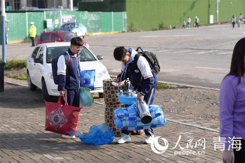 學(xué)生攜帶住宿用品前往學(xué)校。人民網(wǎng)記者 甘海瓊攝