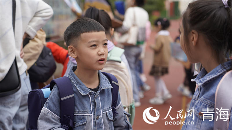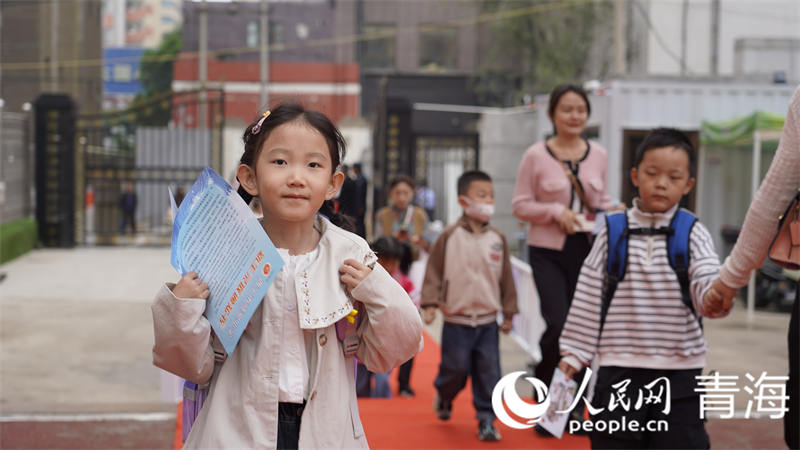 西寧市城東區(qū)曉泉小學(xué)一年級新生走進(jìn)學(xué)校。人民網(wǎng)記者 張莉萍攝