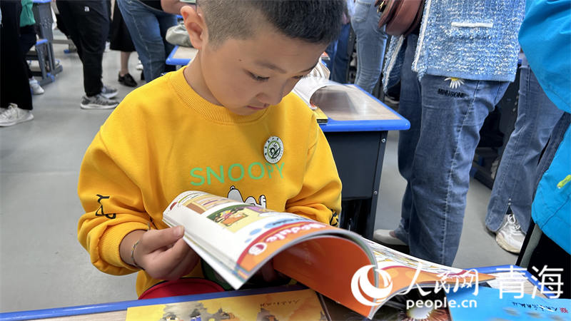 西寧市謝家寨小學(xué)學(xué)生翻閱新書。人民網(wǎng) 陳明菊攝