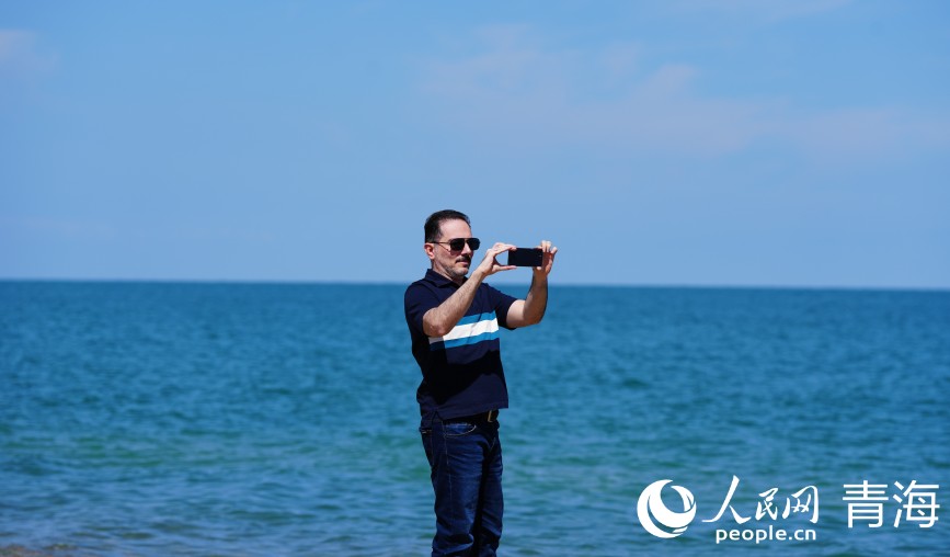 游客紛紛打卡青海湖美景。人民網(wǎng) 馬可欣攝
