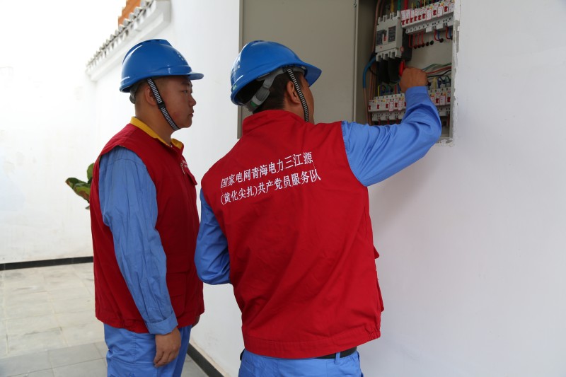 國(guó)網(wǎng)青海黃化供電公司員工在青海省黃南藏族自治州尖扎縣來(lái)玉村開展安全用電檢查。王星宇攝