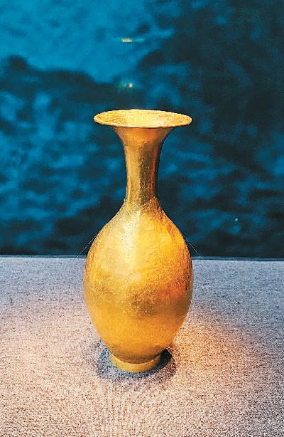 日前開展的“青海都蘭熱水墓群精品文物展”展出的的金胡瓶。