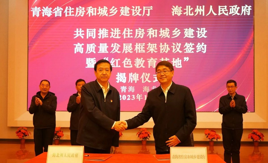 11月7日,海北州人民政府與省住房和城鄉(xiāng)建設(shè)廳在青海原子城簽署《共同推進(jìn)住房和城鄉(xiāng)建設(shè)高質(zhì)量發(fā)展框架協(xié)議》,并舉行“紅色教育基地”揭牌儀式。州委副書(shū)記、州長(zhǎng)張勝源,省住房和城鄉(xiāng)建設(shè)廳廳長(zhǎng)吳志城出席簽約儀式并致辭,州委常委、秘書(shū)長(zhǎng)王永昌,省住房和城鄉(xiāng)建設(shè)廳副廳長(zhǎng)唐曉劍,州人大常委會(huì)副主任王興輝,州政協(xié)副主席楊德出席。副州長(zhǎng)韓石主持儀式。