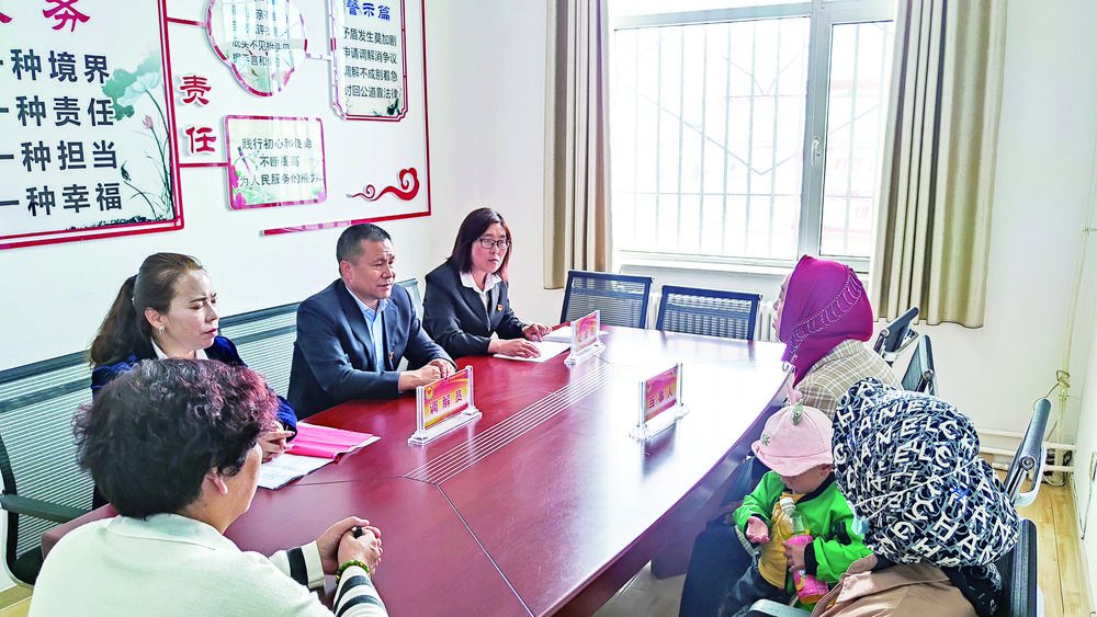 劉瑞霞和同事調(diào)解居民家庭矛盾糾紛。 青海日報(bào)記者 陳贇業(yè) 攝