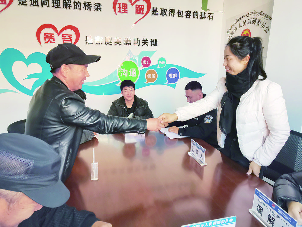 經(jīng)過調(diào)解,小李和老張握手言和。青海日?qǐng)?bào)記者 尹耀增 攝
