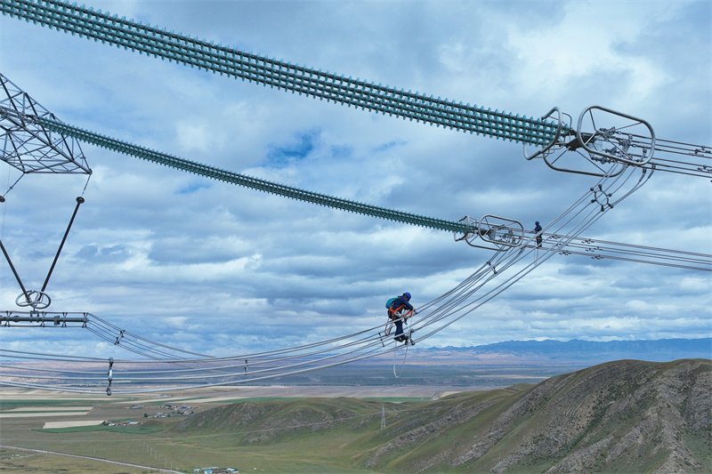 國網(wǎng)青海超高壓公司輸電檢修人員開展青豫特高壓直流輸電線路年度檢修工作。謝莉蓉?cái)z