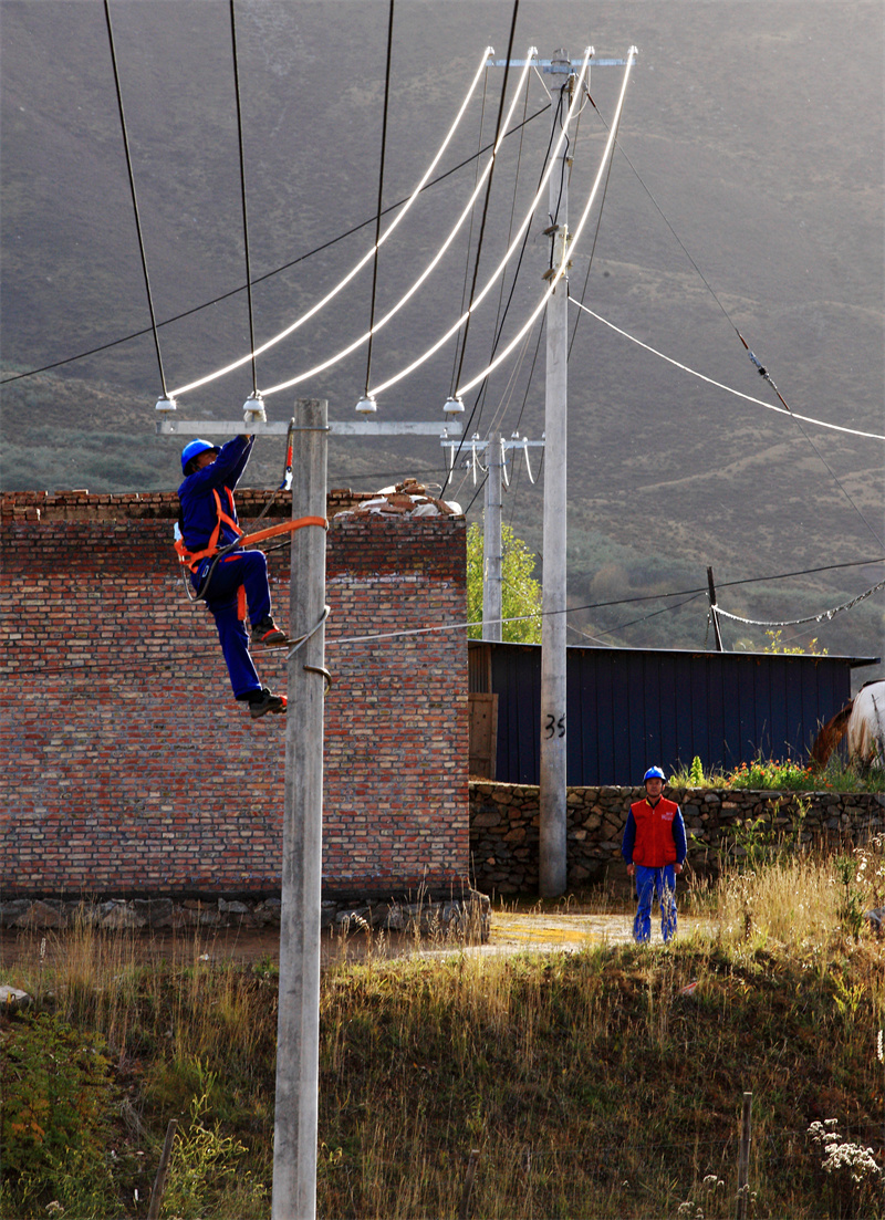 蒼穹之下,高原大地有一抹藍(lán)與天色融為一體,他們或在幾十米的高空銀線上持練飛舞、或在精密的電網(wǎng)設(shè)備旁排查檢修,為電網(wǎng)設(shè)備迎峰度冬做好準(zhǔn)備,確保人民群眾溫暖過冬。(張莉萍)